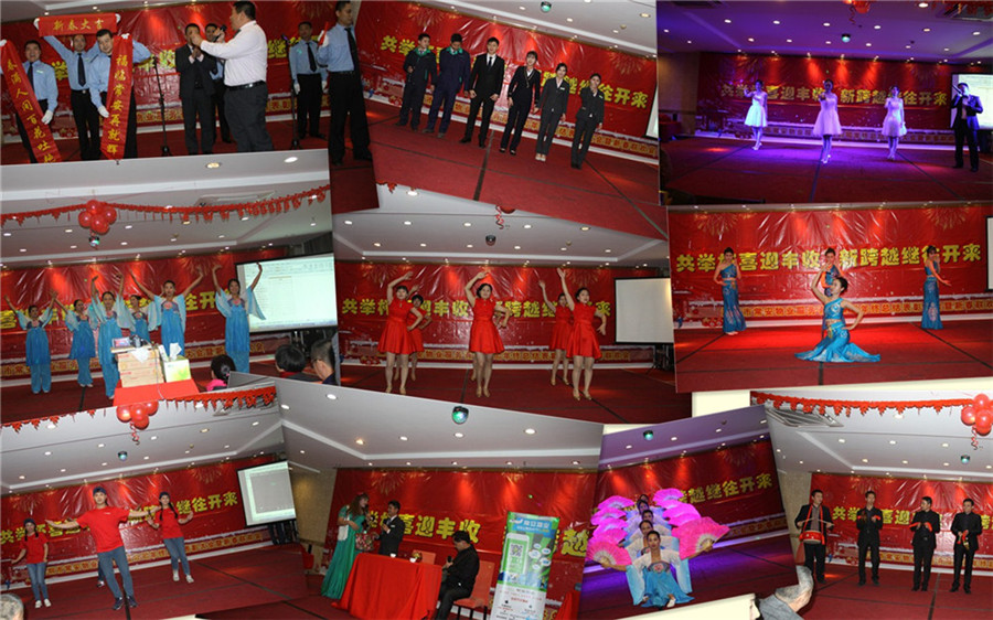 5、歡樂晚宴。全體員工和退休員工歡聚一堂,共同舉杯,開懷暢飲,慶